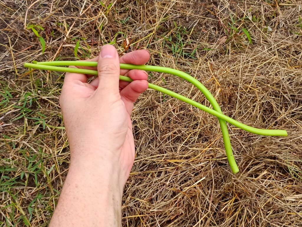 収穫するのは、葉っぱの下から太いツルの生え際までの部分。