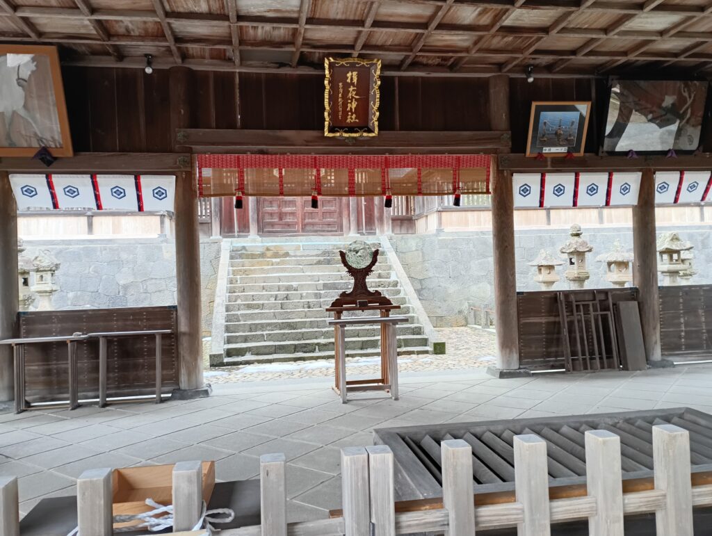 拝殿中央には鏡がそなえられています。