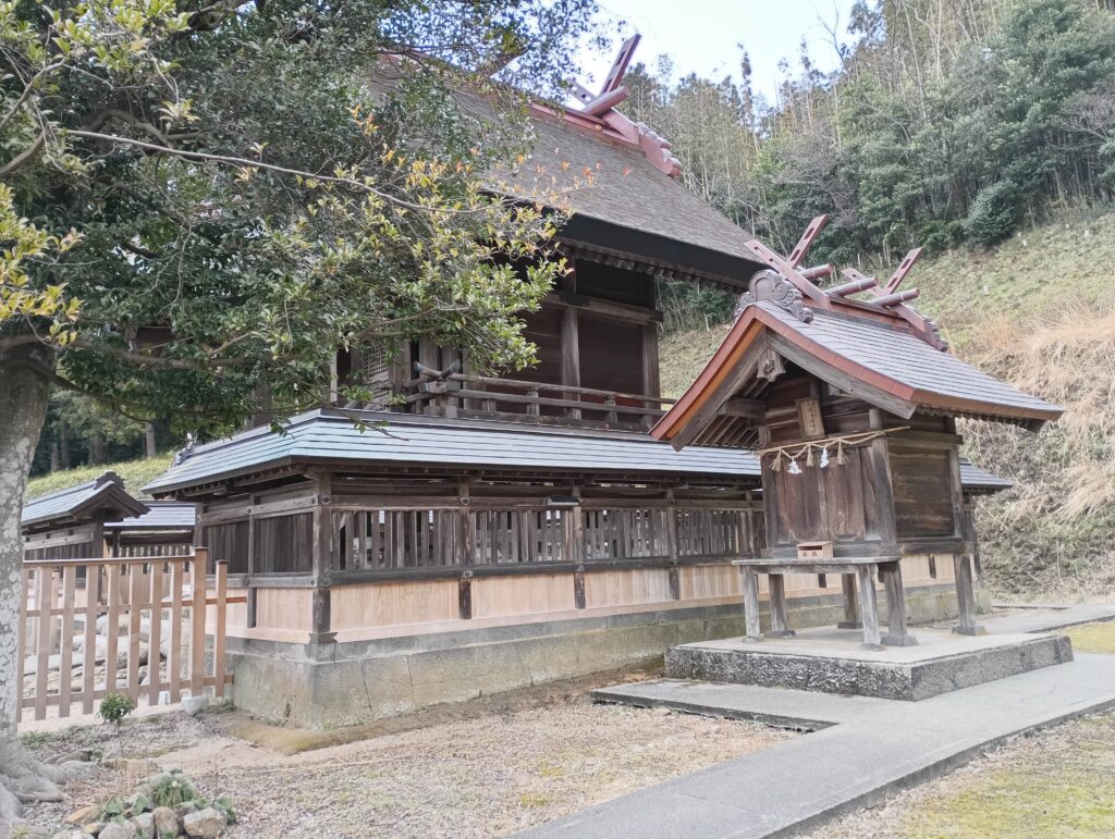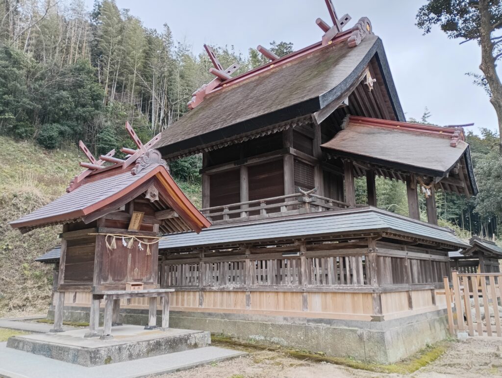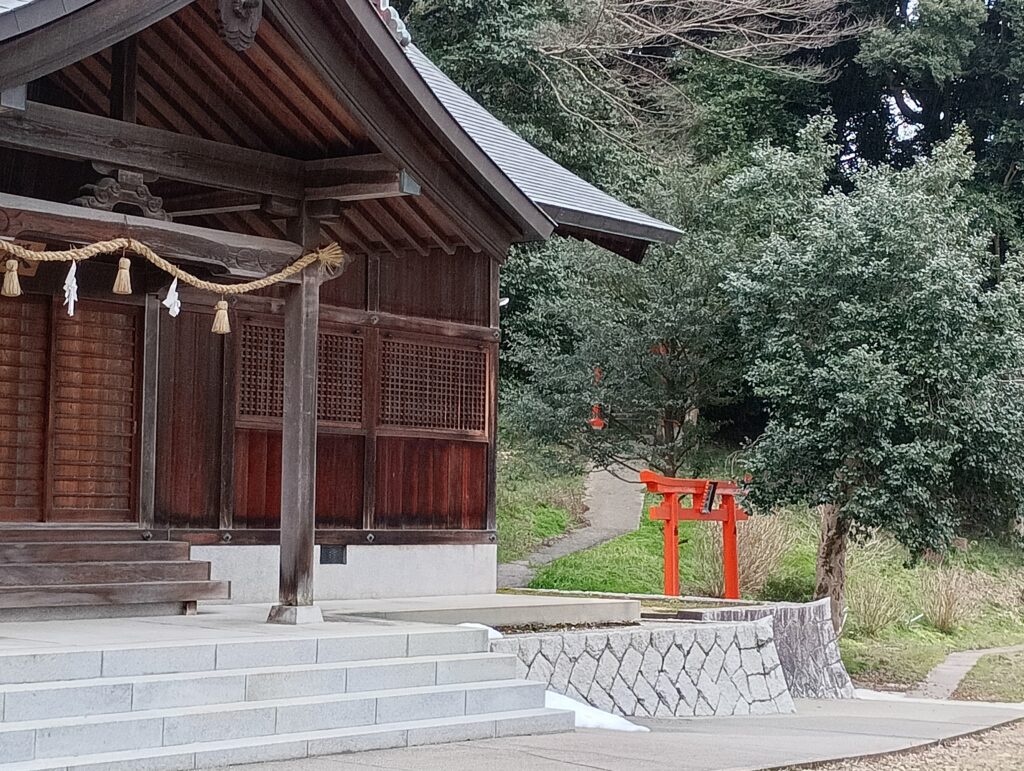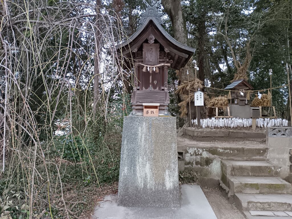 本殿の左右には、それぞれ境内社が控えています。