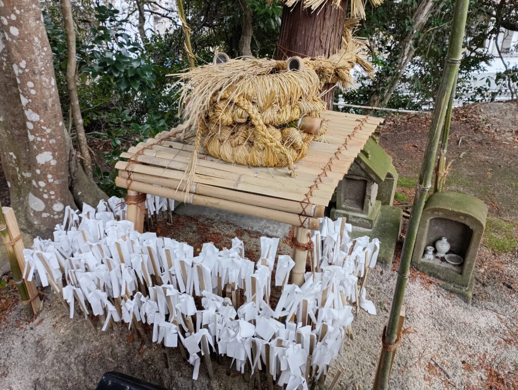 恵比須神社の左隣は、社はありませんが、藁でできた大蛇の首が!