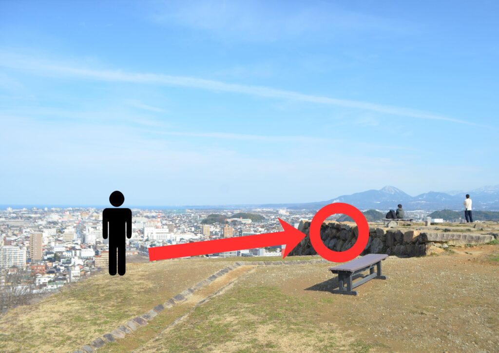 「忘れ石」の位置は、四重櫓の大山方面の角にあります。
