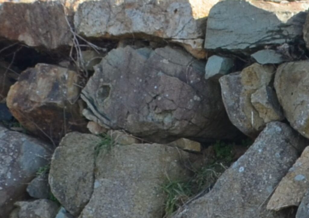 石垣のすみっこにあるので、ちょっと押すと落ちそうなアブナイ石です。