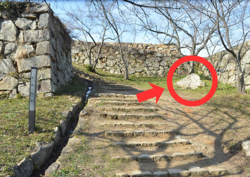 次は、天守台への通路を守る”鉄御門”付近にある「残念石」。
