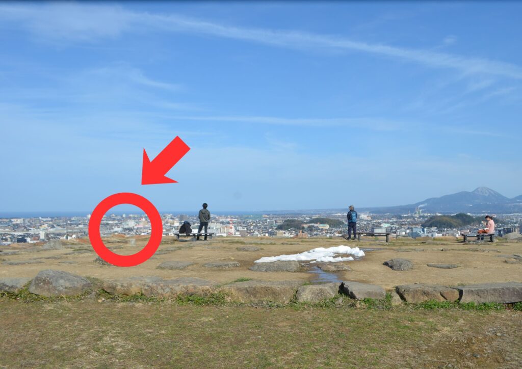 天守台横から大山に向かうように立てば、「鯛石」が見られます。